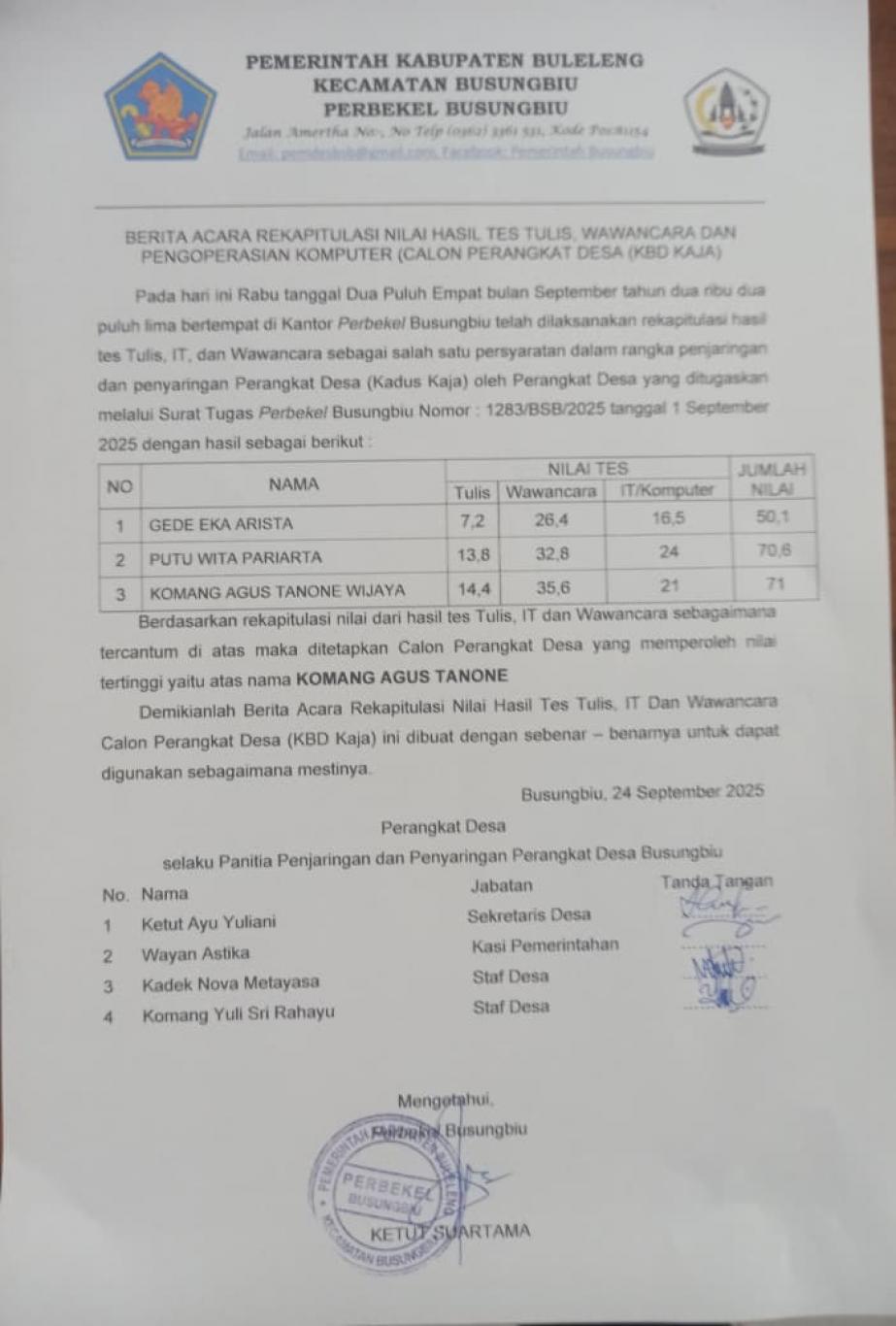 Komentar atas NILAI DAN PROSES PENYARINGAN PERANGKAT DESA BUSUNGBIU